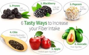 per day from high-fiber foods such as fruits, seeds, beans, and other pulses, oats, and