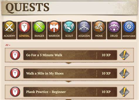 courses, parkour, sword fighting, trickery, and combat skills are among the active offerings.